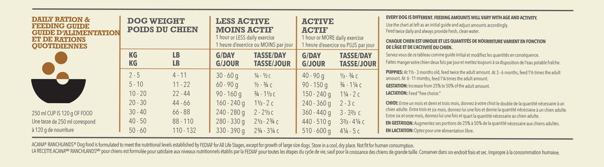 ACANA RANCHLANDS OBSAHUJE ANGUSKÉ HOVĚZÍ, VOLNĚ CHOVANÁ JEHŇATA, BIZONY A YORKSHIRSKÉ VEPŘOVÉ, VŠE DODÁVANÉ ČERSTVÉ NEBO SYROVÉ Z NAŠEHO REGIONU V PODÍLU CELÉ KOŘISTI, COŽ DODÁVÁ ŽIVINY PŘIROZENĚ, BEZ POTŘEBY DLOUHÉHO SEZNAMU UMĚLÝCH DOPLŇKŮ. S NÍZKÝM OBSAHEM SACHARIDŮ A VYSOKÝM OBSAHEM ŽIVOCIŠNÝCH PROTEINŮ PRO DOSAŽENÍ VRCHOLOVÉ KONDICE.