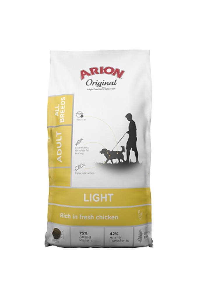 Arion Original Light je kompletní krmivo pro dospělé psy všech plemen, kteří mají nižší potřebu energie. Chutná bezlepková receptura na bázi kuřecího obsahuje nižší hladinu energie, L-karnitin a chondroprotektiva.