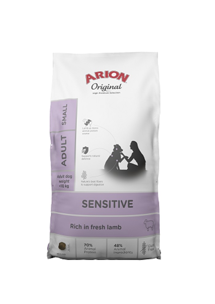 Arion Original Sensitive je kompletní krmivo pro dospělé psy středních plemen. Bezlepková receptura na bázi jehněčího obsahuje různé zdroje vlákniny a prebiotika na podporu zažívání.