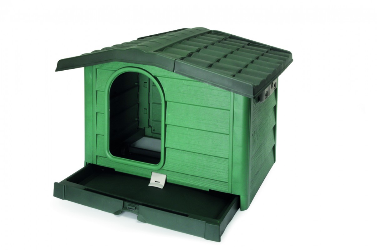 Plastový domek pro psa s odnímatelným dnem, což poskytuje komfor při čištění. Možnost nastavovat odvětrávání střechy. - manipulace s boudou a její sestavování nevyžaduje žádné montážní příslušenství