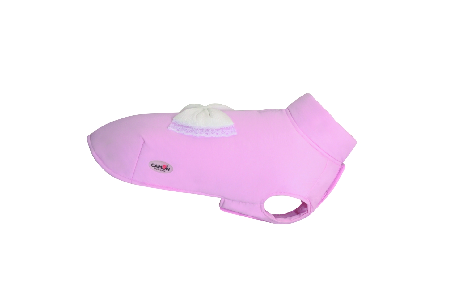 Psí kabátek s elegantní pevnou mašlí na zádech. Dvojité nastavení popruhu na suchý zip a popruhy na zadní nohy.