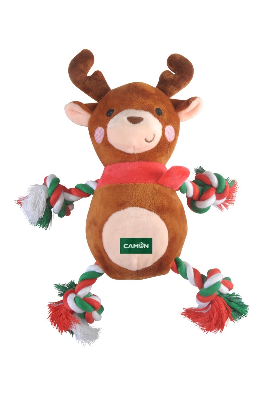Vtipná hračka pro psa ve tvaru vánočního soba s šátkem.