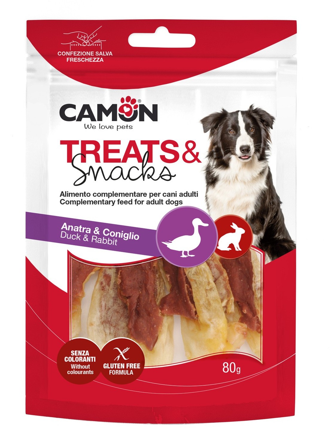SLOŽENÍ: kachní maso 77%, sušené králičí uši 15%, bramborový škrob, (rostlinný) glycerin, arašídy, sorbitol, hrachový protein, sójový (bobový) proteinový koncentrát, chlorid sodný.