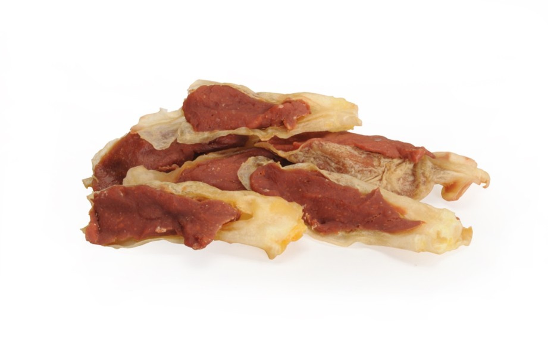 Lahodná psí svačinka ve tvaru králičích uší s kachnou.