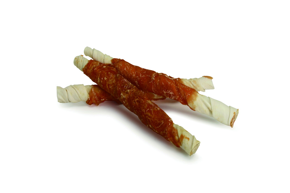 Složení: sušená a tepelně upravená hovězí kůže 69 %, králičí maso 27,8 %, kukuřičný škrob, (rostlinný) glycerin, sorbitol, chlorid sodný.