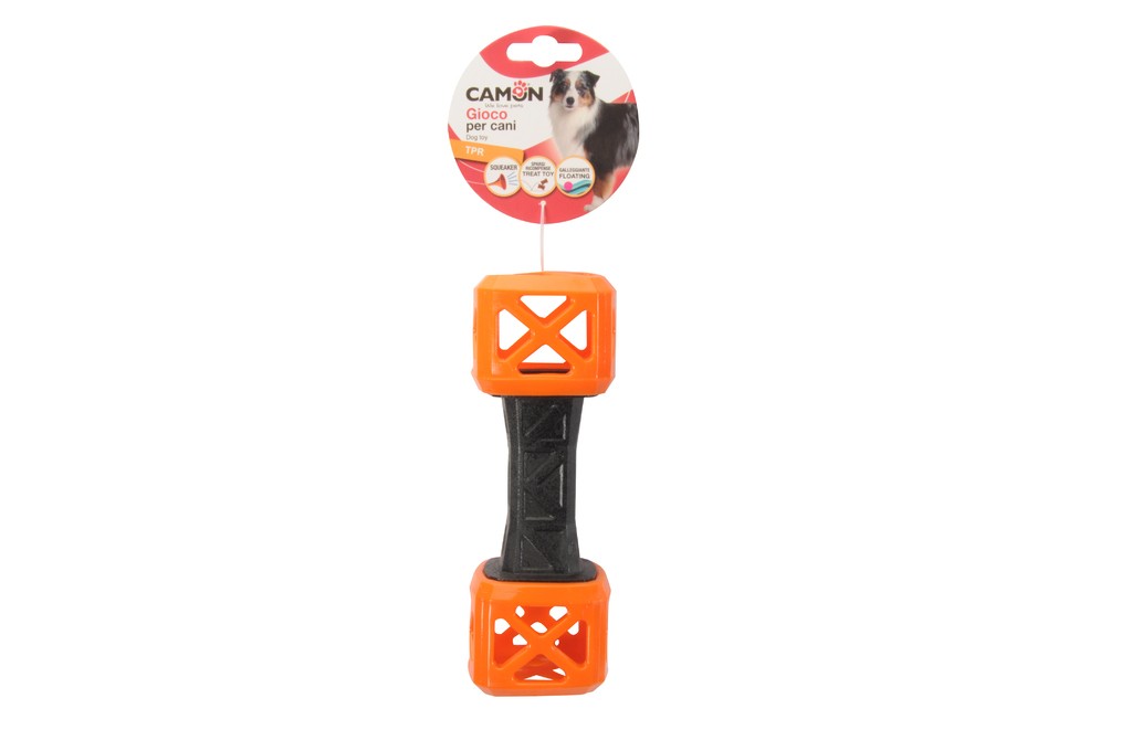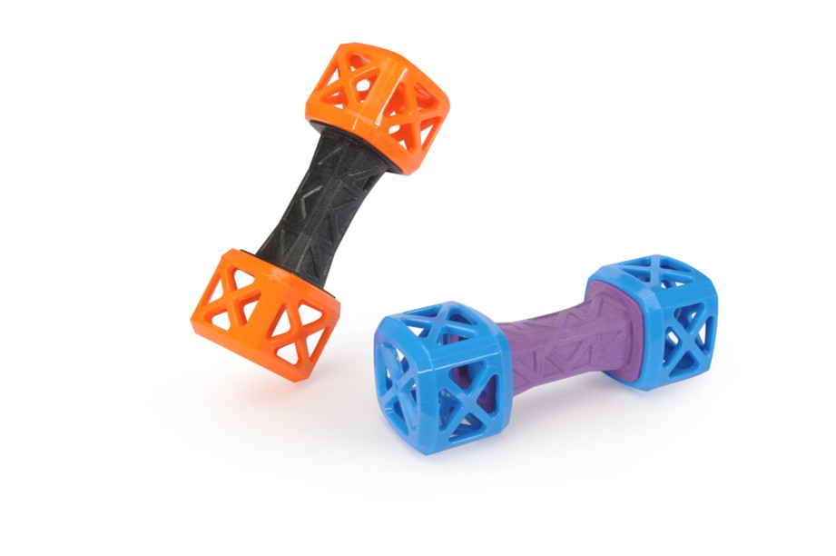 Zábavná plovoucí hračka pro psy ve tvaru činky z TPR s pískadlem, do které lze umístit i pamlsek. K dispozici ve 2 různých barvách.