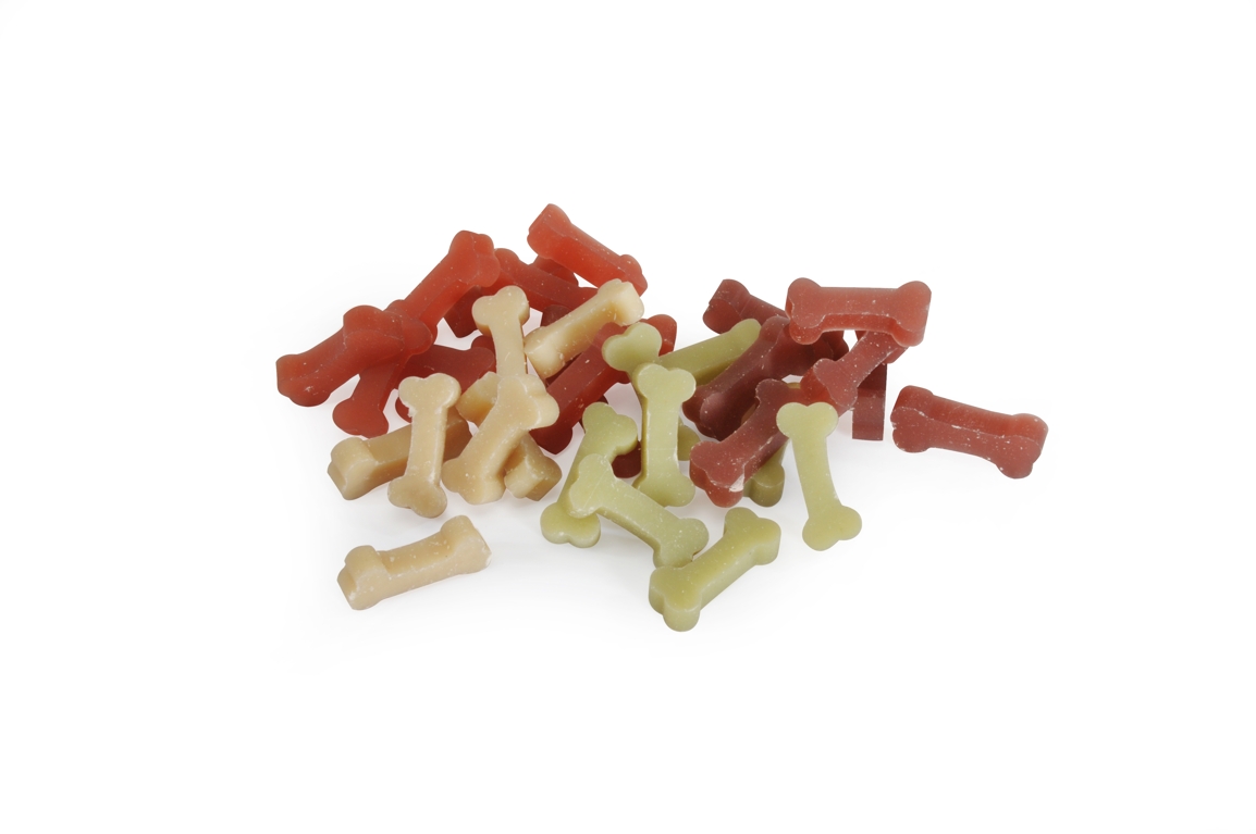 Doplňkové krmivo pro dospělé psy - Dentální pamlsky pro psy - rýžové kostičky s příchutí banán, jahoda, jablko a borůvka