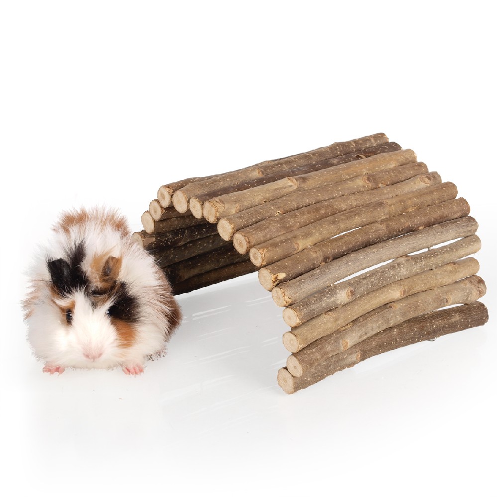 Tvarovatelný můstek z kulatcýh dřívek vhodný jako doplněk do klece pro holdavce (prolézačk,a úkryt, apod.). - bez chemického ošetření (zdravotně nezávadné) Rozměr: 17 x 28 cm