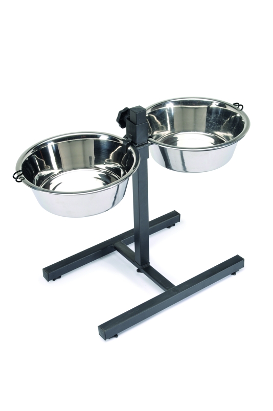 Stojan na misku s nastavitelnou výškou obsahuje 2 misky z nerezové oceli