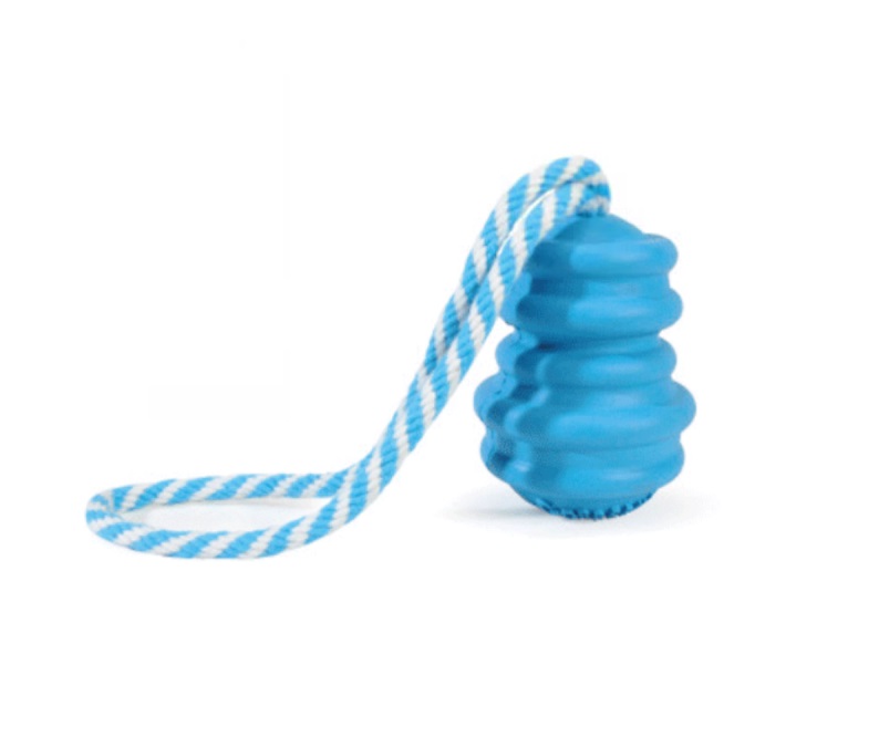 Hračka pro psy z tvrdé gumy s lanem.