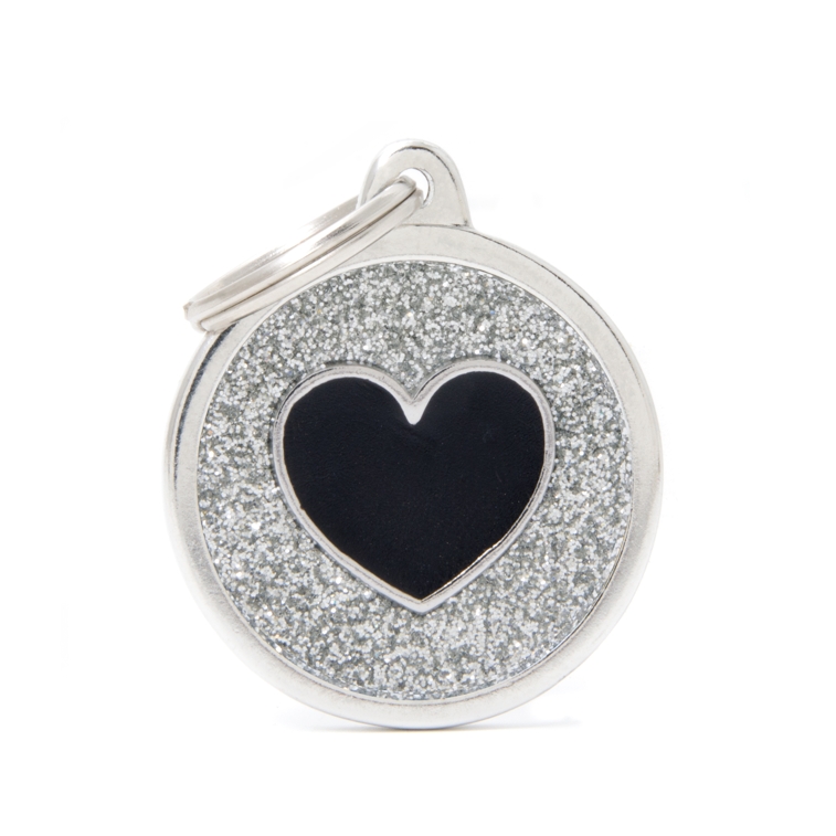 GREY BIG GLITTER CIRCLE BLACK HEART