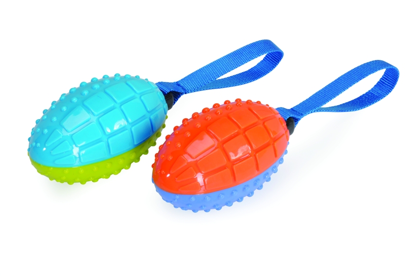 Hračka pro psy - pískající rugby míč Upozornění: Nikdy nenechávejte svého mazlíčka bez dozoru, když si hraje s jakoukoli hračkou. Nenechávejte svého mazlíčka hrát si s poškozenými nebo rozbitými hračkami. Pokud je hračka poškozená nebo chybí-li nějaký díl, ihned ji vyměňte. V případě požití okamžitě volejte veterináře. Tyto hračky nejsou určeny pro děti. Materiál: TPR Požadovanou variantu uveďte v poznámce.