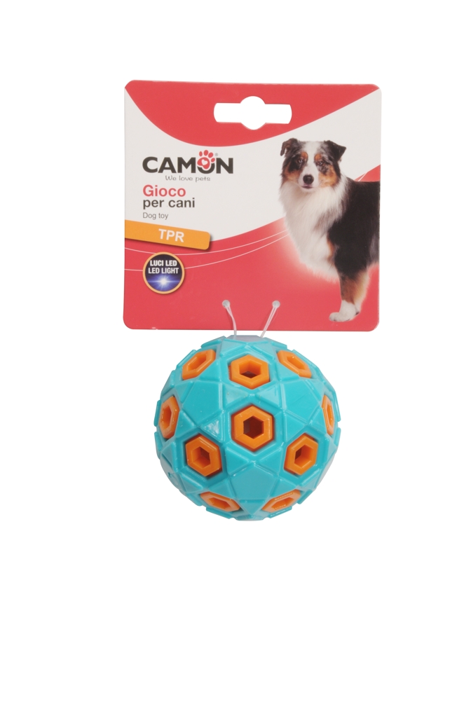 Hračka pro psy - svítící míček. Upozornění: Nikdy nenechávejte svého mazlíčka bez dozoru, když si hraje s jakoukoli hračkou. Nenechávejte svého mazlíčka hrát si s poškozenými nebo rozbitými hračkami. Pokud je hračka poškozená nebo chybí-li nějaký díl, ihned ji vyměňte. V případě požití okamžitě volejte veterináře. Tyto hračky nejsou určeny pro děti. Materiál: TPR
