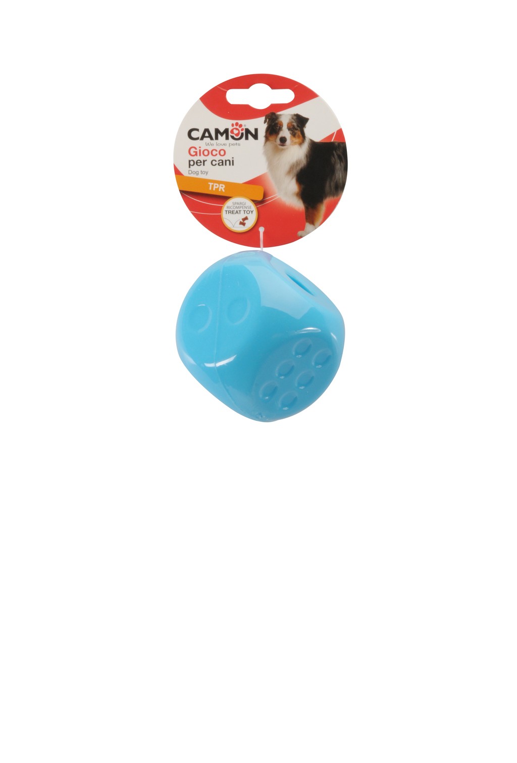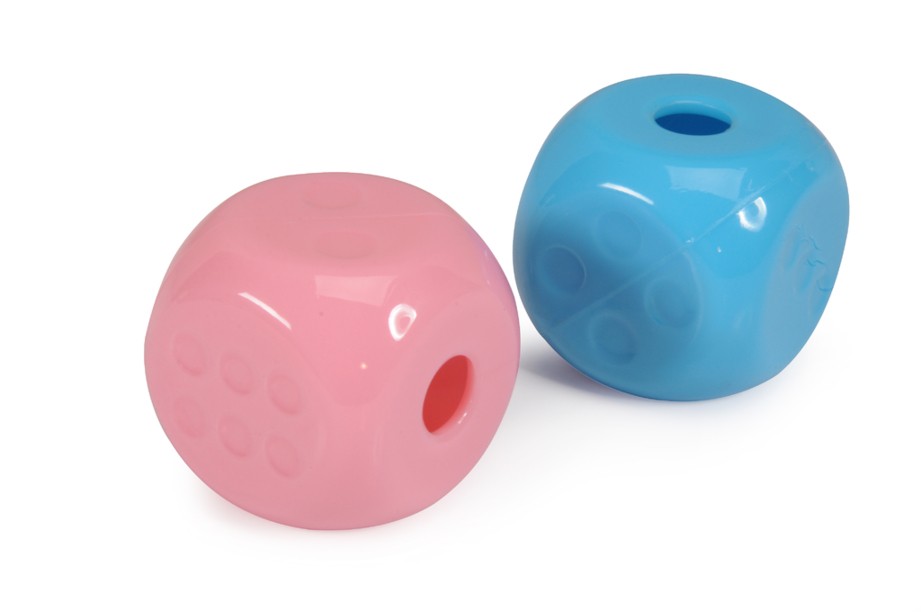 Zábavná hračka pro psy z TPR ve tvaru kostky. Vybavena otvorem, do kterého můžete vložit oblíbené odměny vašeho čtyřnohého kamaráda. K dispozici ve 2 barvách - světle modrá a růžová.