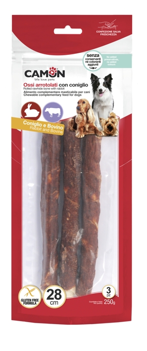 Žvýkací pamlsky pro psy s příchutí králíka, bez přidaných barviv, gluten free.