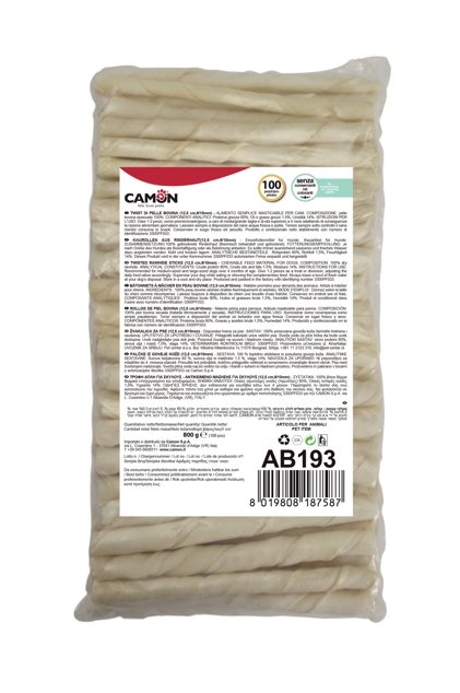 Rawhide twists (100p) *9/10 x 125mm - ŽVÝKACÍ KRMIVO PRO PSY. SLOŽENÍ: 100 % surová kůže (tepelně ošetřená a sušená). ANALYTICKÉ SLOŽKY: Hrubý protein: 82.2 % - Hrubý tuk: 3.5 %- Hrubá vláknina: 2.0 %- Hrubý popel: 1.7 % - Vlhkost: 16.9 %. POKYNY K POUŽITÍ: Doporučeno pro psy středních a velkých velikostí, starších než 4 měsíce. Dávejte 1-2 kousky jako pamlsek nebo odměnu a v návaznosti na to upravte denní porci jídla. Během konzumace nebo žvýkání doplňkového krmiva mějte psa pod dozorem. Pes musí mít vždy k dispozici misku s čerstvou vodou. Skladujte na chladném a suchém místě. Vyrobeno a baleno v továrně pod schvalovacím číslem 2900PF052.
