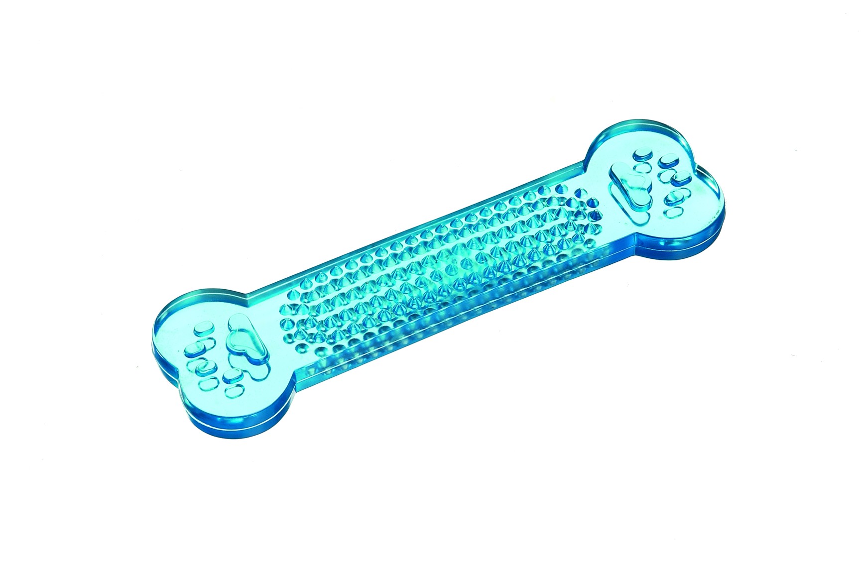 Hračky pro psy. Tato hrací kost je vyrobena z odolného vinylu s vyvýšeným vzorem, který čistí zuby a masíruje dásně, když váš pes žvýká. Upozornění: Nikdy nenechávejte svého mazlíčka bez dozoru, když si hraje s jakoukoli hračkou. Nenechávejte svého mazlíčka hrát si s poškozenými nebo rozbitými hračkami. Pokud je hračka poškozená nebo chybí-li nějaký díl, ihned ji vyměňte. V případě požití okamžitě volejte veterináře. Tyto hračky nejsou určeny pro děti. Materiál: Vinyl.