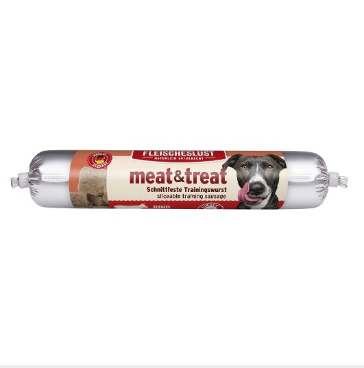 MEAT & TREAT jsou speciálně vyvynuté pochoutky, které uspokojí ty nejnáročnější mazlíčky. Hodí se zejména při tréninku. Skvělá konzistence a jednoduchý tvar spolu s úžasnou chutí a vůní dovede vás i vašeho mazlíčka při každém tréninku snadno o level výš. Samozřejmě jej také můžete využít ke zlepšení chutnosti vašeho běžného krmiva anebo pro zlepšení nálady vašeho kamaráda.