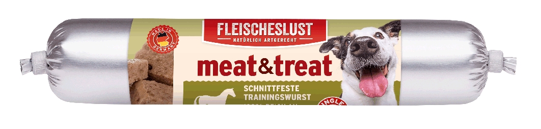 MEAT & TREAT jsou speciálně vyvynuté pochoutky, které uspokojí ty nejnáročnější mazlíčky. Hodí se zejména při tréninku. Skvělá konzistence a jednoduchý tvar spolu s úžasnou chutí a vůní dovede vás i vašeho mazlíčka při každém tréninku snadno o level výš. Samozřejmě jej také můžete využít ke zlepšení chutnosti vašeho běžného krmiva anebo pro zlepšení nálady vašeho kamaráda.