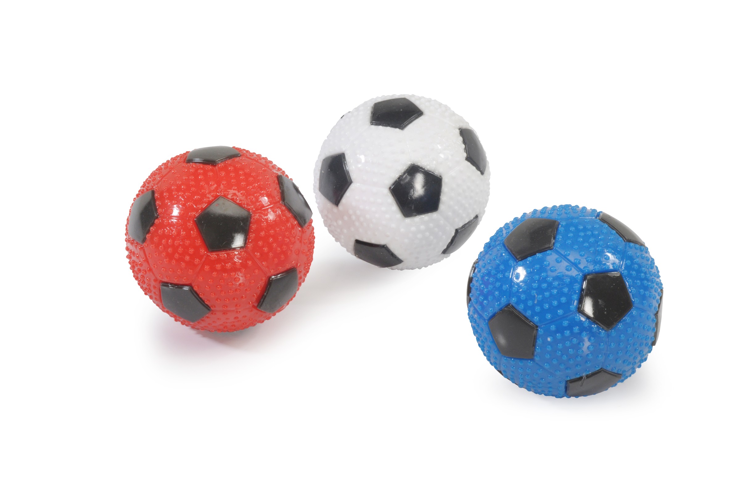 Vtipná a barevná hračka pro psy ve tvaru fotbalového míče s pískadlem.