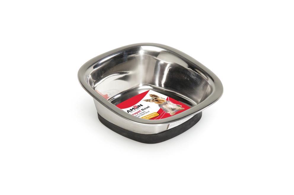 Kvalitní nerezová hranatá miska Durapet s protiskluzovou gumou.