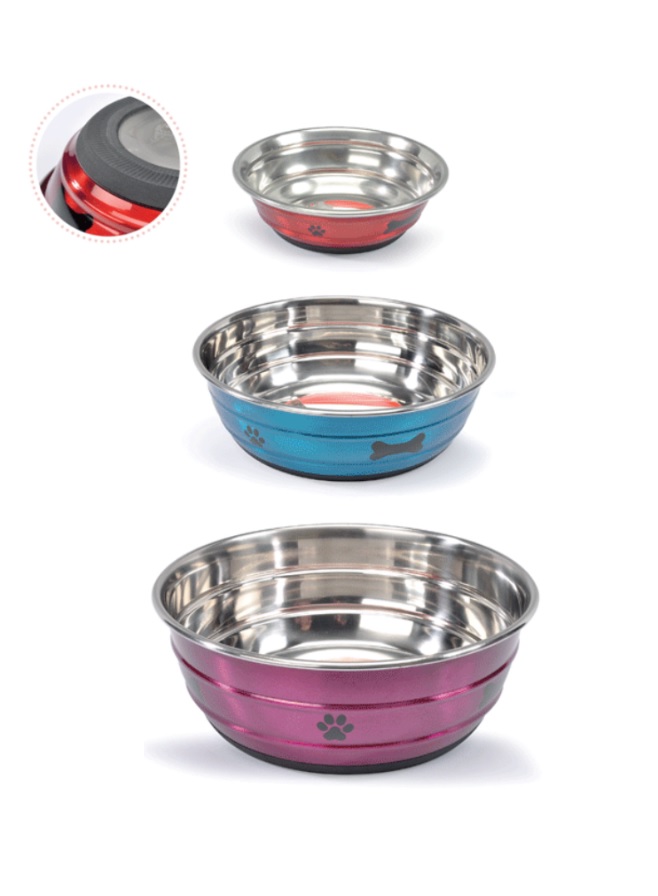 Nerezová miska s dekorem a protiskluzovým dnem. Mix barev, požadovanou barvu uveďte v poznámce.
