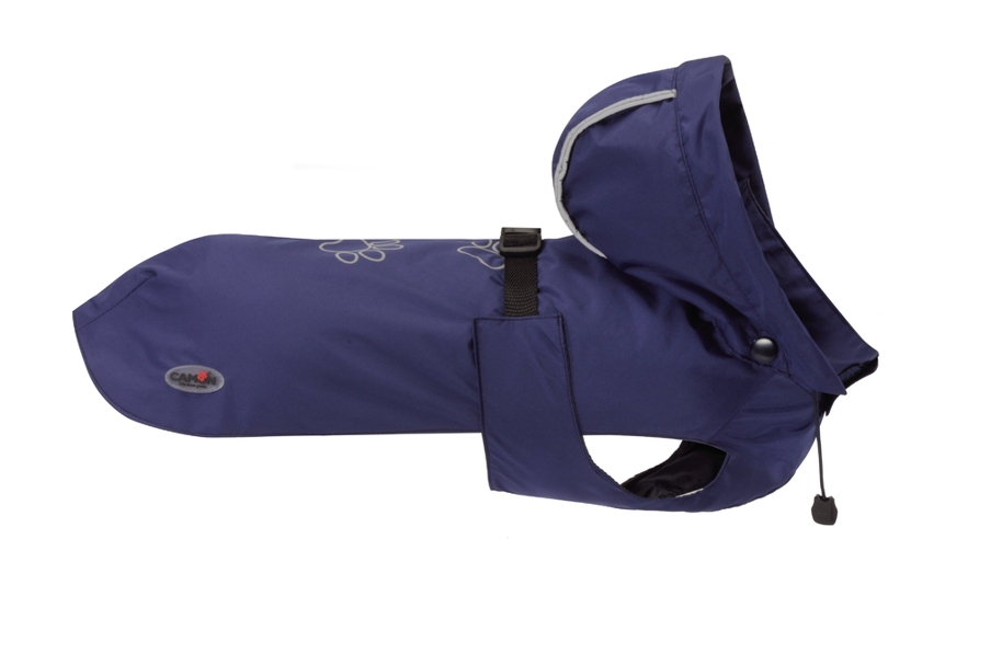 Lehký nepromokavý obleček, s odnímatelnou kapucí, reflexními prvky a s ozdobnými tlapkami na zádech.