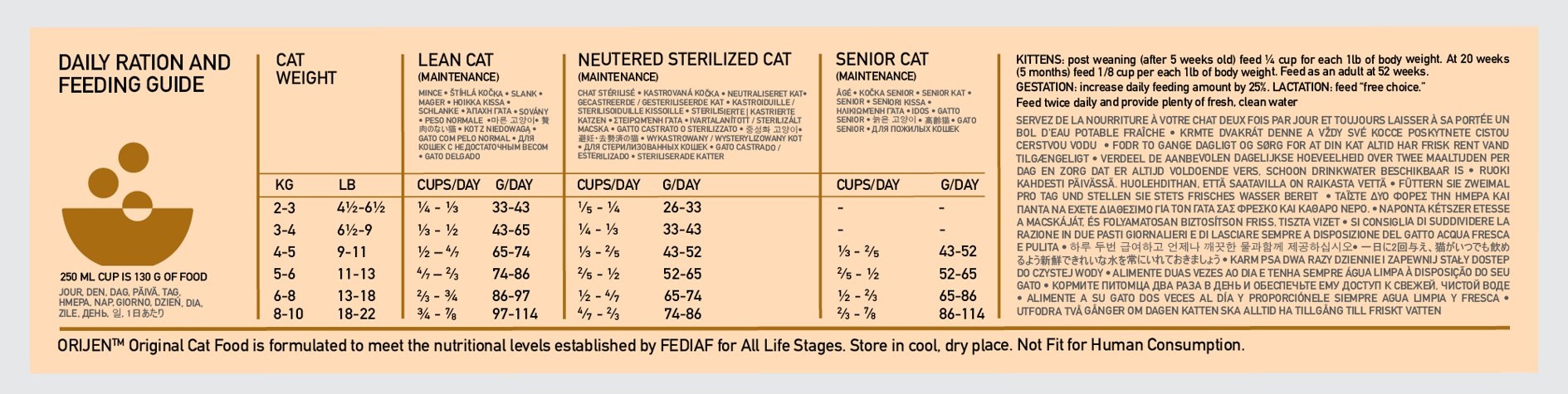 ORIJEN ORIGINAL CAT je plné proteinu z volně chovaných kuřat a krůt, ryb lovených v přírodních vodách a vajec z hnízdních chovů. Všechny tyto suroviny jsou nám dodávány čerstvé nebo syrové v bohatě výživném poměru Celé kořisti. Vítězně oceňovaná krmiva ORIJEN vám zaručí, že vaše milovaná kočka nebo kotě budou spokojené, zdravé a silné. Přečtěte si naše složení a věříme, že budete souhlasit.