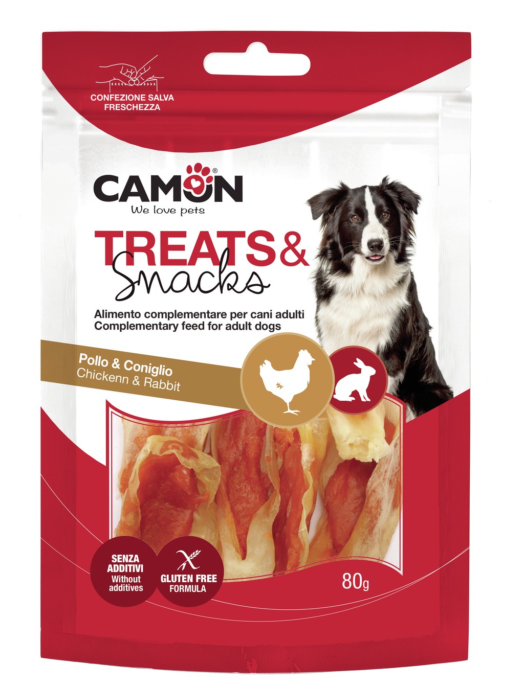 Pamlsek ve tvaru ouška s příchutí králík a kuře.