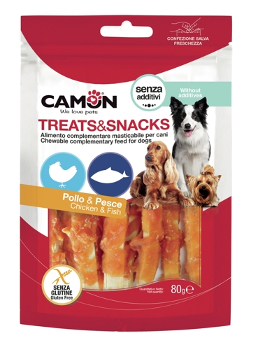 DOPLŇKOVÉ KRMIVO PRO PSY - SLOŽENÍ: Kuřecí maso 48.5 %, ryba 40 % (tkaničnice atlantská), kukuřičný škrob, glycerin, sorbitol, sůl.