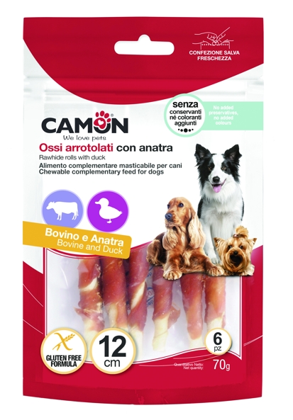NÁVOD K POUŽITÍ: podávejte 1 až 4 kusy (cca 11,7 g každý) denně dospělým psům jako pamlsek nebo zpestření a podle toho upravte denní dávku běžného krmiva . Dohlížejte na svého psa při žvýkání a vždy mu nechte misku s čerstvou vodou k dispozici. Skladujte na chladném a suchém místě. Před použitím odstraňte deoxidátor. Po použití obal uzavřete. Vyrobeno a zabaleno v továrně se schvalovacím číslem 3700PF022 Camon S.p.A.