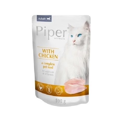 Složení: maso a vedlejší produkty živočišného původu 65% (10% kuřecí prsa), vývar, minerální látky. Analytické složky: bílkoviny 11%, oleje a tuky 5%, popel 1,5%, vláknina 0,5%, vlhkost 80%, vápník 0,3%, fosfor 0,25 %. Doplňkové látky/kg: Vitamin D3 240 IU, vitamin C (kyselina askorbová) 550 mg, zinek (oxid zinečnatý) 13 mg, měď (síran měďnatý pentahydrát) 2 mg, mangan (oxid manganu) 0,5 mg, jód (jodičnan vápenatý) 0,4 mg, taurin 800 mg. Dávkování: vyznačeno na obalu! Krmný návod: Podávejte při pokojové teplotě, 2x za den. Zajistěte vždy čerstvou pitnou vodu. Skladujte při pokojové teplotě. Po otevření skladujte v chladničce.