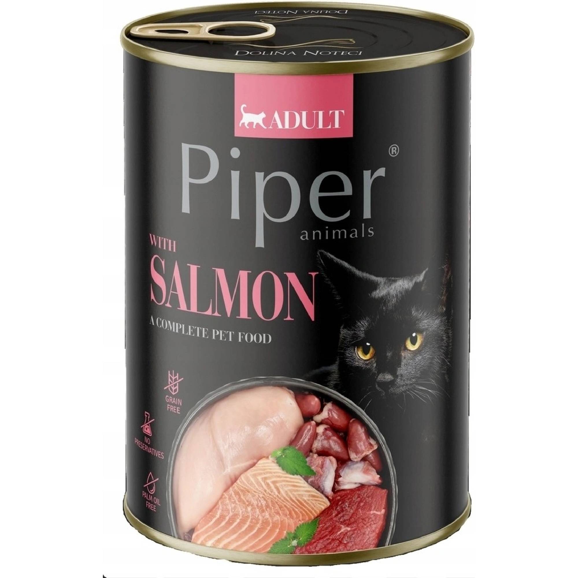Maso a vedlejší produkty živočišného původu 55 % (hovězí maso 10%, kuřecí maso 5%, vepřové maso 5%, kuřecí srdíčka 3%, kuřecí žaludky 3%), vývar, ryba a vedlejší produkty z ryb (10 % losos), minerální látky, oleje a tuky (lněný olej 0,2 %), sušený kozlík lékařský 0,01 %.