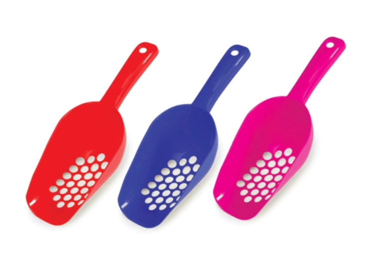 Lopatka na čištění kočičí toalety. Hygienické barevné plastové lopatky na stelivo.