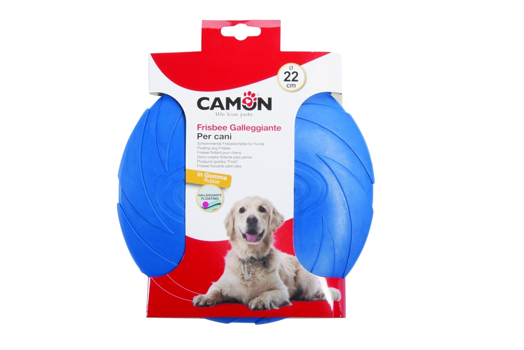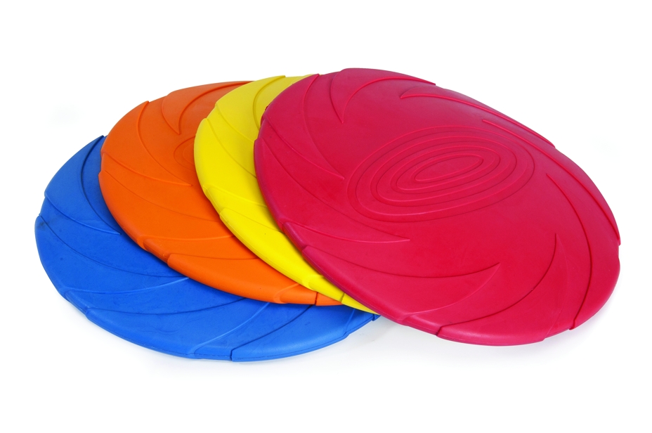 Plovoucí gumové frisbee o průměru 22 cm.