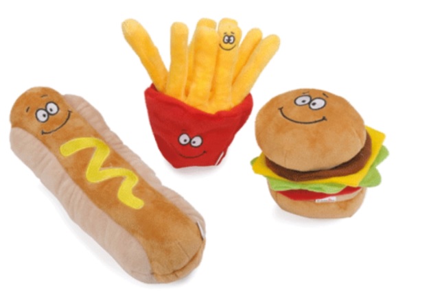 Vtipné plyšové hračky pro psy inspirované rychlým občerstvením. Vybaveno vnitřním pískačem. K dispozici ve 3 různých variantách, požadovanou variantu uveďte v poznámce. Hračky pro psy. Upozornění: Nikdy nenechávejte svého mazlíčka bez dozoru, když si hraje s jakoukoli hračkou. Nenechávejte svého mazlíčka hrát si s poškozenými nebo rozbitými hračkami. Pokud je hračka poškozená nebo chybí-li nějaký díl, ihned ji vyměňte. V případě požití okamžitě volejte veterináře. Tyto hračky nejsou určeny pro děti.