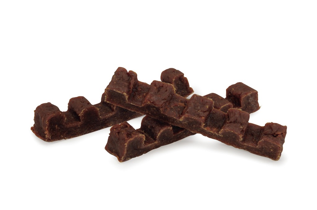 NÁVOD K POUŽITÍ: Doporučeno pro psy starší 6 měsíců. Podávejte 1/5 až 1 ks denně jako pamlsek nebo zpestření, podle toho upravte denní dávku klasického krmiva. Vždy nechte svému psovi k dispozici misku s čerstvou a čistou vodou. Dohlížejte na svého psa při jídle nebo žvýkání doplňkového krmiva. Skladujte na chladném a suchém místě. Před použitím odstraňte deoxidátor. Množství 100g. Výrobní šarže a datum minimální trvanlivosti: vytištěno na spodní straně sáčku.