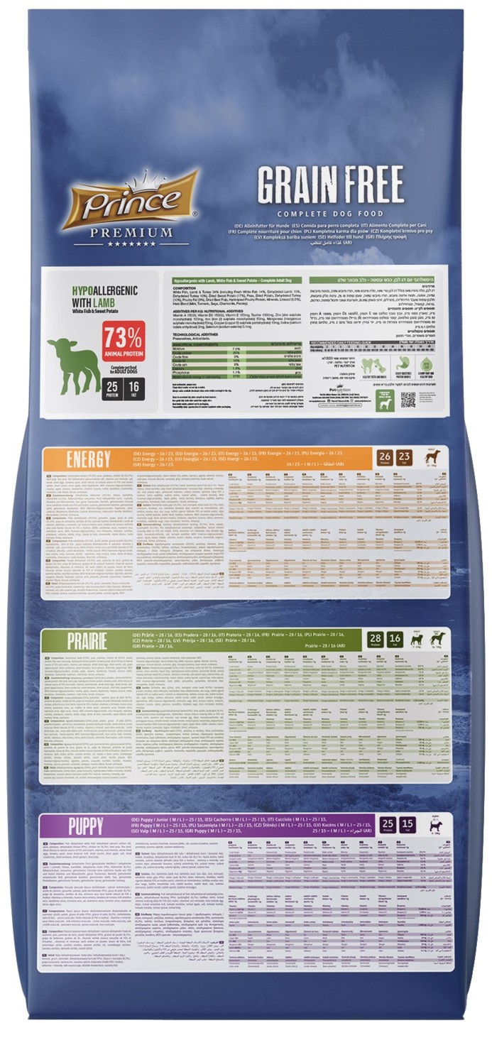 Dopřejte svému pejskovi bezobilnou řadu PRINCE. Prémiové suché krmivo pro psy bez obilovin, pečlivě vyvinuté pro psy všech věkových kategorií. Kvalitní krmivo plné esenciálních živin. Tato výjimečná receptura přináší mnoho výhod, díky nimž bude váš mazlíček prospívat.