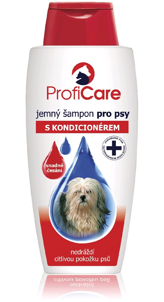 Jemný šampon s kondicionérem pro pravidelnou péči o srst Vašeho psa. Šampon Proficare přispívá ke zvláčnění a regeneraci srsti a umožňuje její snadné rozčesávání. Díky jemnému složení nedráždí a nevysušuje citlivou pokožku. Po jeho použití je srst hebká a lesklá. Šampon má vynikající mycí vlastnosti. Svým složením a neutrálním pH je maximálně šetrný vůči pokožce a srsti. Návod k použití: Přiměřené množství šamponu naneste na namočenou srst, rovnoměrně rozetřete a napěňte. Poté srst důkladně opláchněte. V případě potřeby postup zopakujte. Nakonec srst vysušte ručníkem, případně vyfénujte.