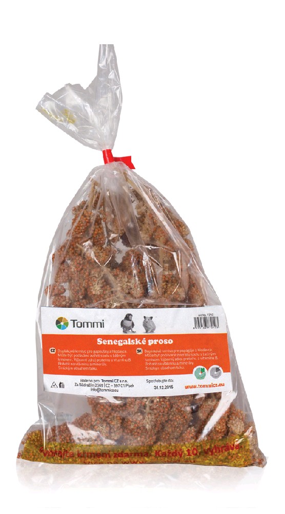 Senegalské proso v klasech k ozobu klece. Vhodné jak pro drobné hlodavce také i pro malé papoušky. Balení: 100 g