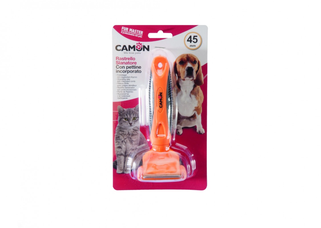 Hřeben na trimování srsti - Skvělý úchop díky propracovanému tvaru - Ergonomická gumová rukojeť - Ocelový nůž speciálně navržený tak, aby se zabránilo podráždění pokožky - Vhodný pro profesionální úpravu srsti - Odstraňuje srst jednoduše, rychle a efektivně - Vhodný pro psy a kočky