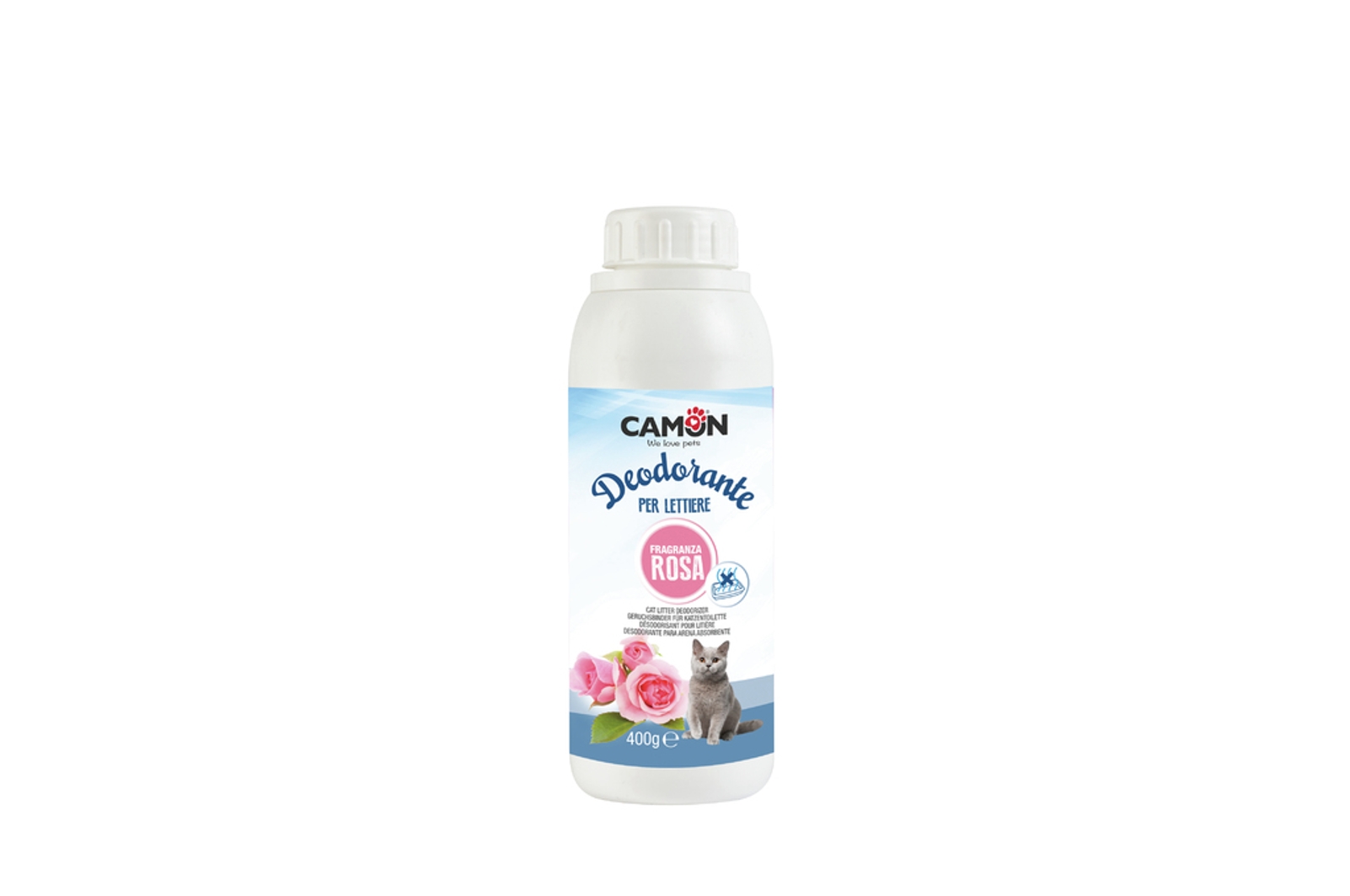 Deodorant s vůní růže. Ideální řešení pro podestýlky malých zvířat, jako jsou kočky, ptáci nebo hlodavci. Jeho enzymy neutralizují nepříjemné pachy a zanechávají jemnou a příjemnou vůni. Díky tomu prodlužuje životnost podestýlky. Použití: Nasypejte do podestýlky při každé její výměně, pečlivě uzavírejte. Složení: zeolit >30%, enzymy >1% a <5%. Obsahuje vůni, která může způsobovat alergickou reakci. Udržujte z dosahu dětí.