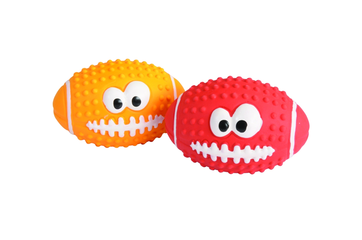 Hračka pro psy - latexový rugby míč s úsměvem.