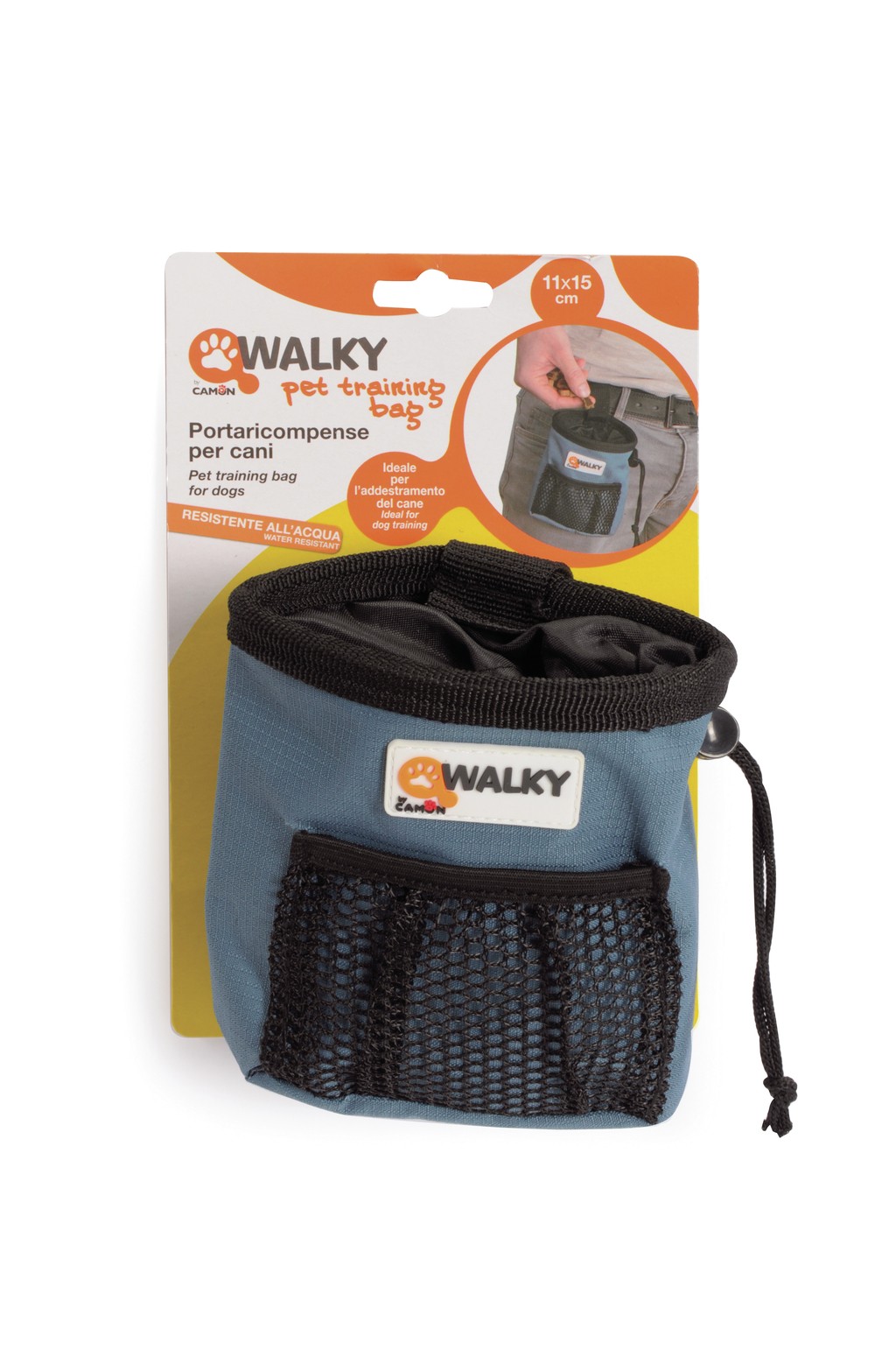 Walky Training Bag je praktická a odolná kapsa na pamlsky, navržená pro tréninky nebo jednoduše k tomu, abyste si s sebou vzali oblíbené jídlo vašeho čtyřnohého přítele. Vybaveno horním zapínáním na šňůrku a přední kapsou. Lze snadno připevnit k opasku díky praktické sponě.