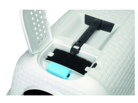 Uzavřená toaleta pro kočky s dvířkami a odnímatelnou stříškou. Součástí je rukojeť na snadné přenášení toalety a zásobník na sáčky. Na vrchu naleznete carbonový filtr, který eliminuje zápach z toalety. Inovativní a precizně vytvořený design rattanu vytvoří ve vaší domácnosti příjemný prvek, na rozdíl od klasických toalet pro kočky. - k rozebrání toalety nepotřebujete žádné montážní příslušenství