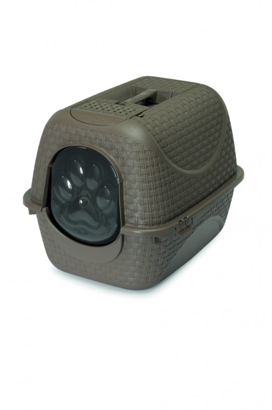 Uzavřená toaleta pro kočky s dvířkami a odnímatelnou stříškou. Součástí je rukojeť na snadné přenášení toalety a zásobník na sáčky. Na vrchu naleznete carbonový filtr, který eliminuje zápach z toalety. Inovativní a precizně vytvořený design rattanu vytvoří ve vaší domácnosti příjemný prvek, na rozdíl od klasických toalet pro kočky. - k rozebrání toalety nepotřebujete žádné montážní příslušenství