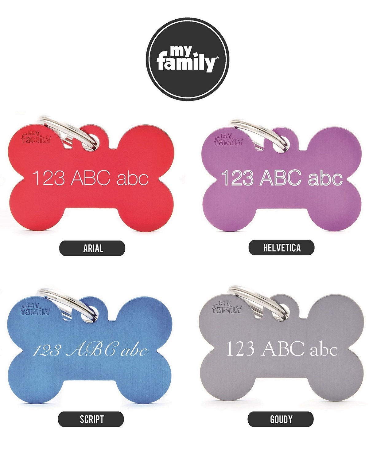 Pro objednání gravírování nám v poznámce před dokončením objednávky napište, jaké písmo chcete použít (Goudy, Helvetica, Script, Arial) a co chcete na známku vyrýt, maximum je 10 znaků na řádek. Uveďte maximálně 3 řádky na jednu stranu a maximálně 3 řádky na druhou stranu (oboustranné rytí je možné pouze u známek bez obrázků a vzorů).