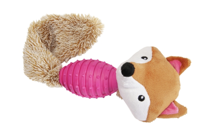 Zábavná hračka pro psy. Plyšová hlava a ocásek jsou spojeny pevným gumovým středem. Požadovanou variantu uveďte v poznámce.
